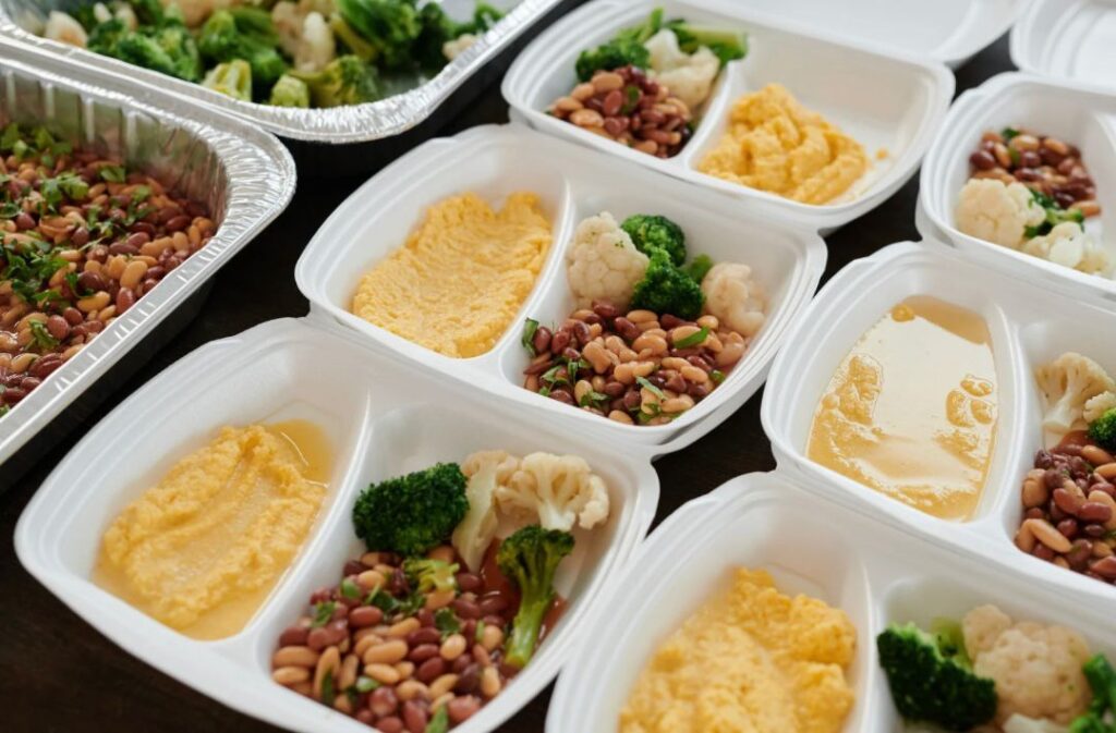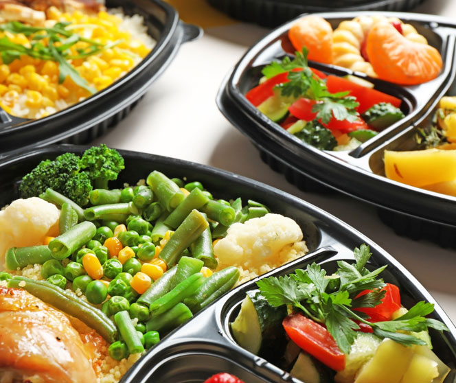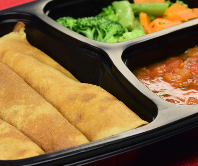 Você escolhe o modelo de embalagem “marmitex” de sua preferência, com ou sem divisórias.